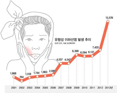 바이러스 감염에 따른 유행성 이하선염은 겨울이나 봄철에 환자 발생이 잦다. 부산지역에서는 최근 고등학생들 사이에서 볼거리가 많이 돌고 있다.