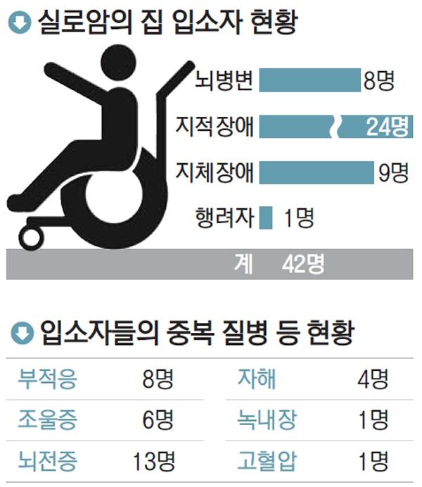 법인이 해산되면 현재 '실로암의 집' 입소자 42명은 집이나 다름없던 거처를 다른 시설로 옮겨야 한다. 이곳 장애인들은 신체적인 장애 외에도 조울증, 뇌전증, 부적응과 자해 같은 각종 중복 질병과 문제를 안고 있는 상태다.