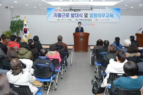 연제지역자활센터(센터장 정덕용)는 1월 25일 연제구청 대회의실에서 자활근로자 등 70여명이 참석한 가운데 '2019년 자활근로 발대식 및 자활근로사업 참여자 법정의무교육'을 실시했다.
