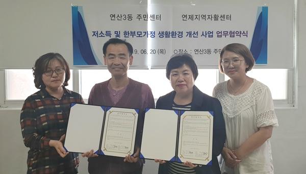 연산3동(동장 홍순희)은 지난 20일 복지사각지대 발굴과 위기 가구 대상자들의 사회성 회복에 도움을 주고자 연제지역자활센터와 업무협약을 체결하였다.