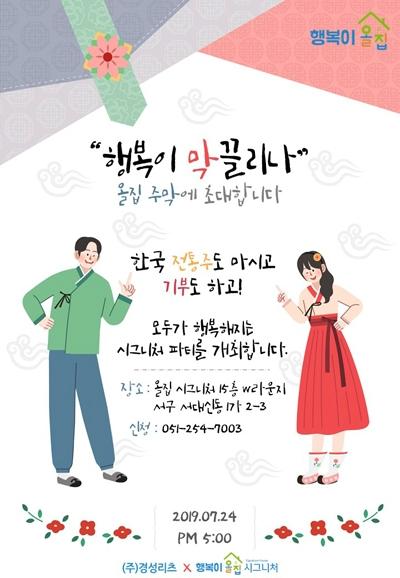 ㈜경성리츠가 7월 24일 올집 시그니처 대신동 센터에서 '행복이 막끌리나'라는 주막을 컨셉으로 전국 각 지역에서 생산하는 막걸리를 맛보는 시음회를 개최한다.