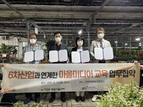 동서대학교(총장 장제국) 링크플러스 사업단은 최근 부산 기장군 농업기술센터(소장 박미진), 시청자미디어재단 부산시청자미디어센터(센터장 김배억), 미래화훼영농협동조합(대표 양장수)과 ‘6차 산업과 연계한 마을미디어 교육’ 프로그램 공동 기획과 운영을 위한 업무협약을 했다.