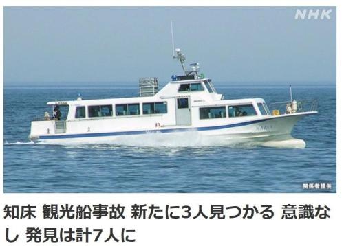 24일 일본 교도통신과 NHK 등에 따르면 이날 오전 9명이 구조돼 인근 병원으로 이송됐고, 이 중 8명은 의식이 없는 상태다. 26명 중 24명이 승객이며 이 중 어린이 2명이 포함된 것으로 알려졌다. 2명은 선장과 승무원이다.