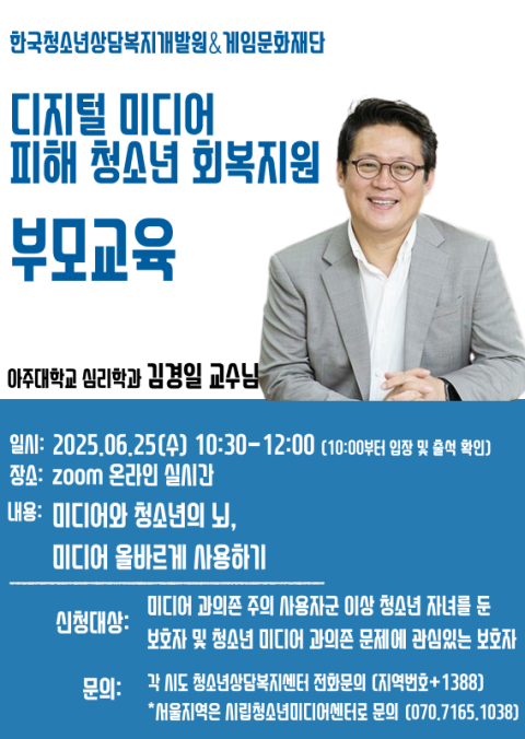 보호자 교육에 참여한 한 보호자는 “자녀의 미디어 사용을 통제하기에만 중점을 두었다면, 오늘 강연을 통해 보호자가 청소년의 미디어 사용 심리에 대해 먼저 이해하고 건강하게 열린 태도로 소통하는 일관된 훈육방식이 중요함을 알았다”며 소감을 전했다.