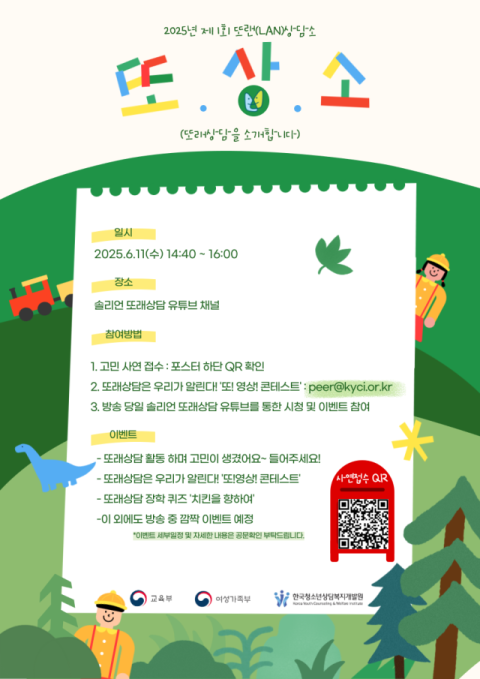 한국청소년상담복지개발원(이하 청소년상담원)은 국민과의 소통을 강화하고 2025년 소통 성과 확산을 위해 ‘2025년 국민소통 우수사례 대국민 온라인 투표’를 실시한다고 24일 밝혔다.