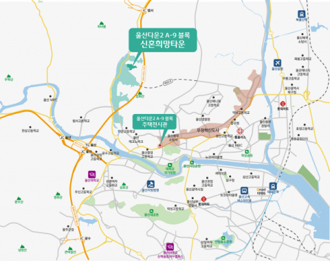 울산다운2지구는 56만평 규모로 조성중인 공공주택지구로 국도 14호선이 통과하고, 인근에 울산JC, 범서IC, 동해고속도로가 위치하여 광역 교통망이 우수하다.