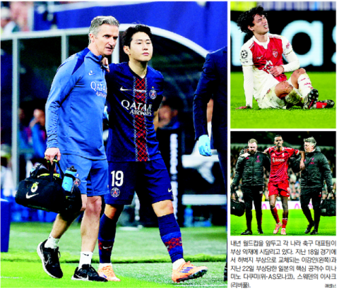2026년 북중미 월드컵을 6개월가량 앞두고 세계 각국의 축구대표팀이 부상 악재로 비상이 걸렸다. 한국과 일본, 스웨덴 등의 주축 선수들이 부상 여파로 내년 월드컵 출전이 불투명해 졌기 때문이다.