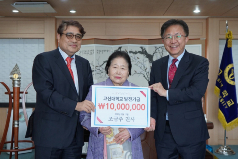양주새순교회 소속 임정여 권사가 고신대학교(총장 이정기)를 위해 발전기금 200만 원을 후원했다고 밝혔다. 전달식은 담임목사인 최영완 목사(학교법인 고려학원 이사)와 교역자 3명이 학교를 방문해 후원자의 뜻을 전하며 발전기금을 전달했다.
