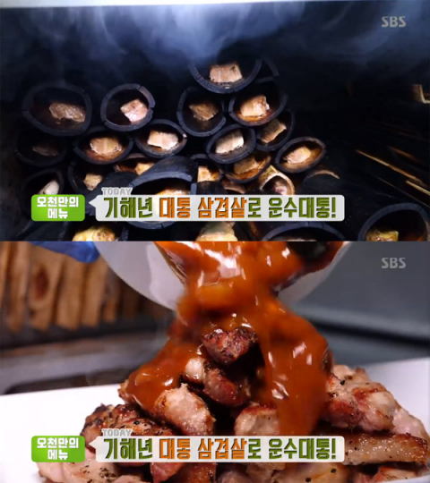 [생방송 투데이 오늘방송맛집] 2일 저녁 방송된 SBS '생방송 투데이'에서는 '오천만의 메뉴' 코너를 통해 '기해년 대통삼겹살로 운수대통!' 편이 소개됐다.