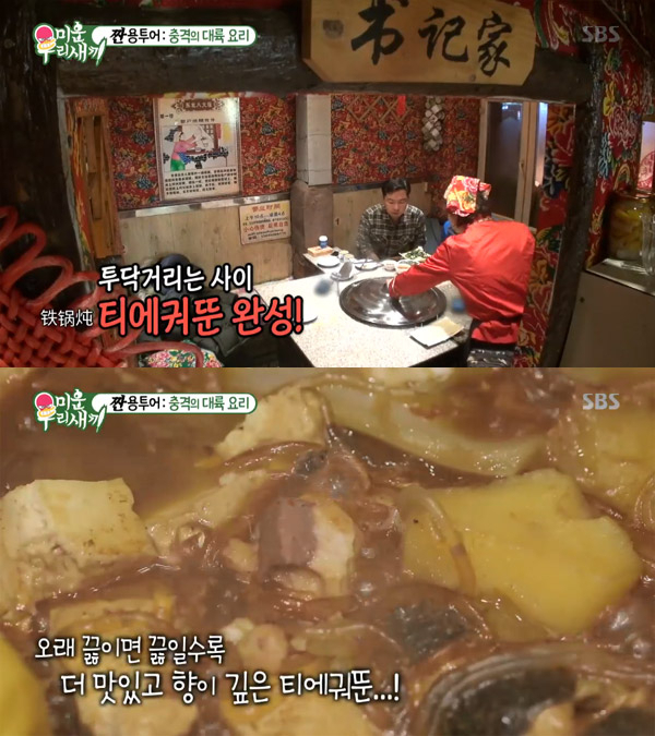 두 사람은 나온 가득 담겨 나오는 '티에궈뚠'을 보고 "비주얼이 너무 크다. 정말 이게 맞냐"고 깜짝 놀란 모습을 보였다. 점원이 '대두어'라고 설명한 특대 물고기에 임원희는 "사람들이 이거 자주 시키냐고 물어봐라"고 정석용에게 시키는가 하면, 급기야 편육 고기 요리에는 손짓몸짓으로 점원에게 먹는 방법을 시도해 웃음을 유발했다. 하지만 옥수수반죽까지 더해지며 완성된 음식 '티에궈뚠'을 맛본 임원희는 "국물이 묵직하고 좋다. 술과 국물 좋아하는 사람이면 다 좋아할 것"이라며 감탄했다. 정석용 역시 "대박이다"라며 엄지를 치켜세웠다.
