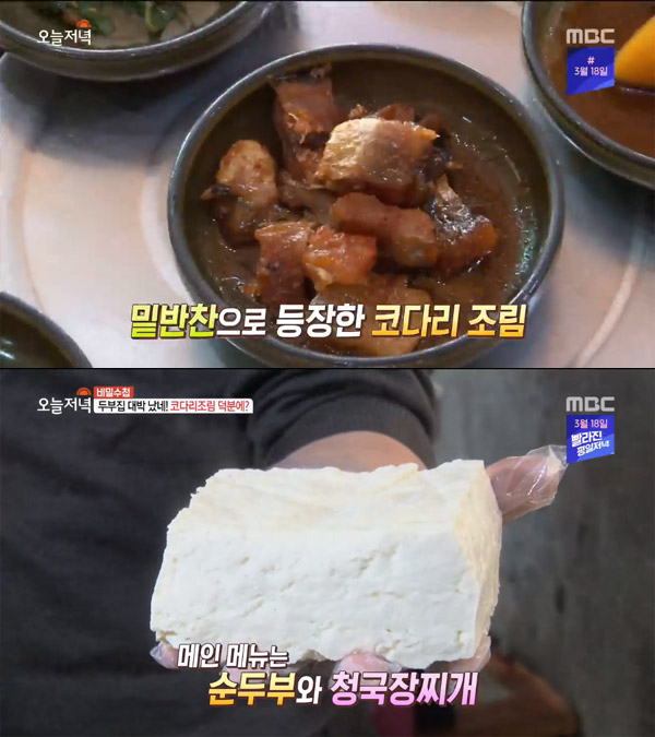 13일 방송되는 MBC '생방송 오늘 저녁'에서는 '비밀 수첩' 코너를 통해 '두부집 대박 났네! 코다리 조림 덕분에?' 편이 소개됐다.