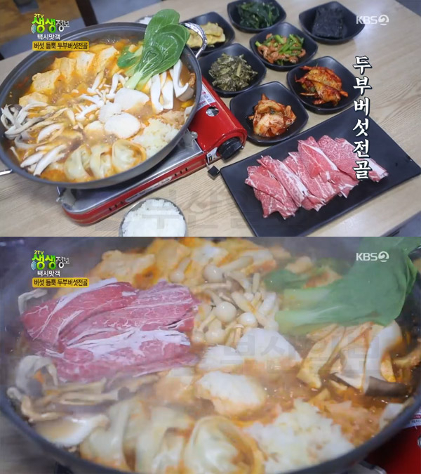 경기 의정부시 태평로100번길(의정부동)에 위치한 '가마솥 두부의 맛'이 이날 '두부버섯전골' 맛집으로 알려진 곳으로 2인 이상 주문 가능으로 10000원에 만날 수 있다. 점심시간마다 손님들고 꽉꽉 들어찬다는 이 곳은 가게에서 매일 아침마다 직접 만드는 고소한 두부에 평소 접하기 힘들고 귀하다는 다양한 종류의 향긋한 버섯이 골고루 촘촘하게 들어가 국물보다 많은 양을 자랑하고, 만두와 소고기까지 화룡점정으로 더해져 한 냄비에 푸짐하게 담겨나온다.