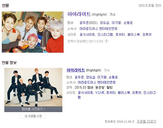 하이라이트, 빠른 프로필 수정 "용준형 이름 없다"