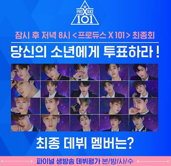 '프로듀스X101' 파이널 생방송 문자 투표가 오픈됐다.