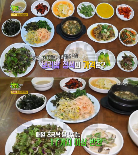 (생생정보통 맛집오늘) 23일 저녁 방송된 KBS '2TV 생생정보'에서는 '리얼가왕' 코너를 통해 '5000원 보리밥 정식' 맛집이 소개됐다.
