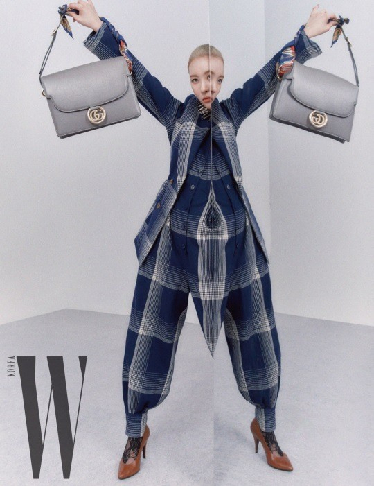 특히 화보 속에서 카이는 울 크레이프 코트 안에 아이보리 컬러의 셔츠와 다크 그레이 팬츠, 아가일 패턴의 니트와 실크 팬츠를 매치했다.