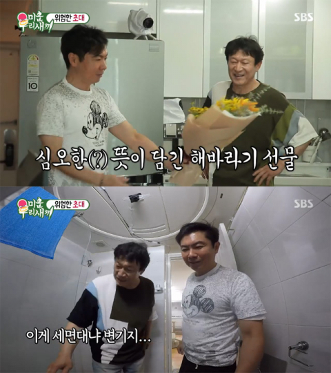 이날 방송에서 임원희의 집에 극단 시절부터 선배인 김응수가 찾아와 해바라기 꽃을 선물했다. 짠하우스 현관문에 들어서자마자 폭풍 잔소리를 시작한 김응수는 앞서 임원희의 절친 정석용이 먼저 지적하며 화제가 됐던 임원희의 세면대도 보러 갔다. 김응수는 "방송으로 봤는데 불 켜기가 겁난다"고 말해 웃음을 자아냈고, 임원희는 "그래도 나름 닦았다"고 항변했다. 하지만 실물을 본 김응수는 "이게 세면대냐 변기지"라고 면박을 줬다.