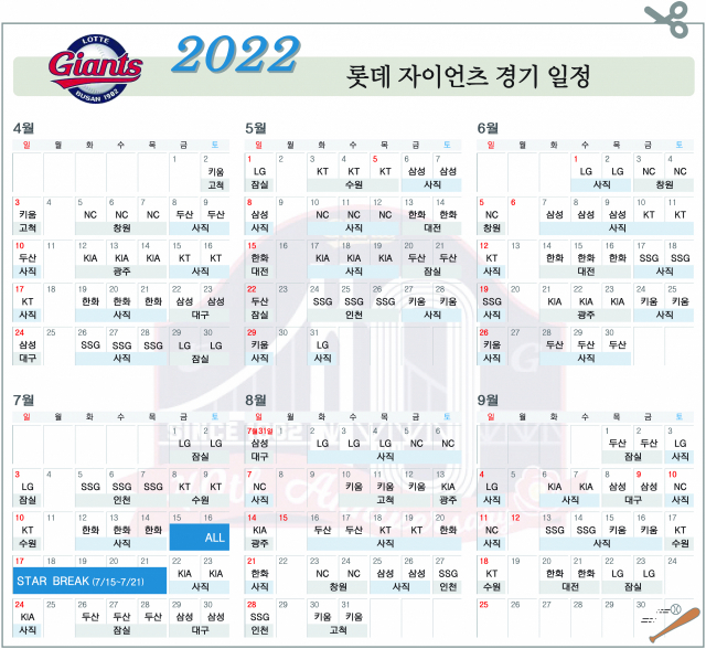 [2022 프로야구] 롯데 자이언츠 경기 일정