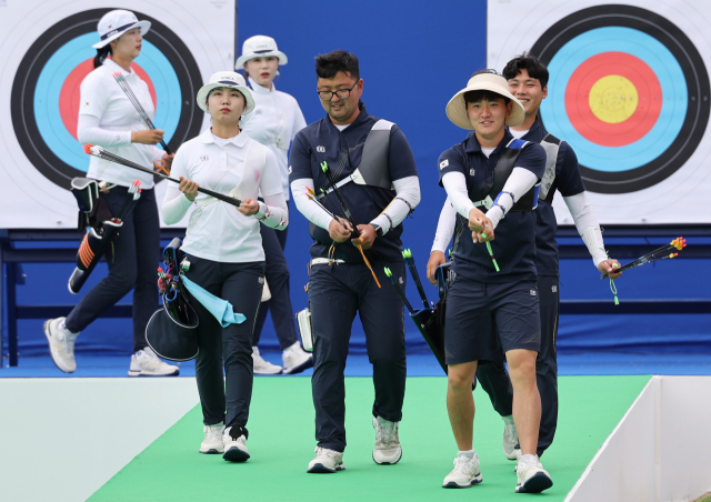 2024 파리 올림픽에 출전한 한국 선수단은 펜싱과 양궁, 수영, 배드민턴 등에서 금메달 5개·종합순위 15위를 목표로 세웠다.양궁 남녀 대표팀이 훈련을 하고 있다. 연합뉴스