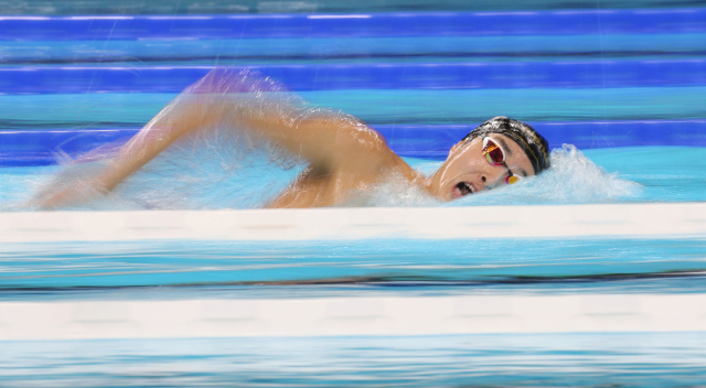 2024 파리 올림픽에 출전한 한국 선수단은 펜싱과 양궁, 수영, 배드민턴 등에서 금메달 5개·종합순위 15위를 목표로 세웠다. 수영 김우민이 훈련을 하고 있다. 연합뉴스