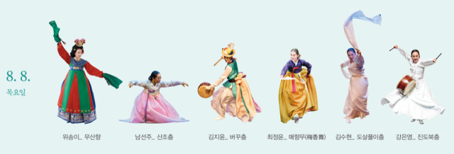 영남춤축제 공모를 통해 선정된 30인의 춤꾼들이 펼치는 ‘한국전통춤판’ 다섯 번째 공연. 출연자와 선보일 춤은 위송이 ‘무산향’, 남선주 ‘황무봉류 산조춤’, 김지윤 ‘버꾸춤’, 최정윤 ‘매향무’, 김수현 ‘도살풀이춤’, 강은영 ‘진도북춤’ 등이다. ▶8월 8일(목) 오후 7시 30분 국립부산국악원 예지당. 관람료 전석 1만 원.