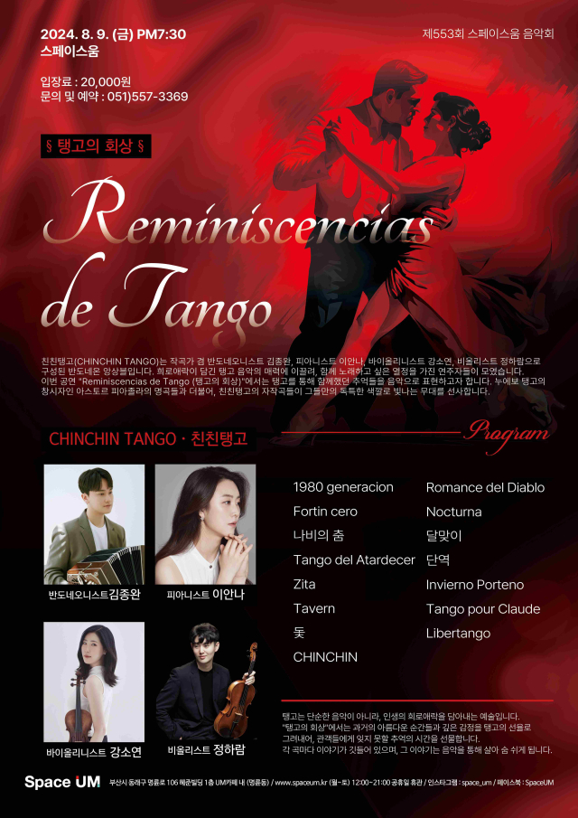 ◆제553회 스페이스 움 음악회 ‘Reminiscencias de Tango (탱고의 회상)’ [스페이스 움]