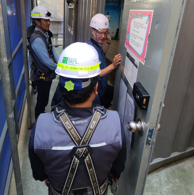 부산노동청은 지난 2일 오후 2시께 롯데건설(주)에서 시공하는 부산 부산진구 가야동 주상복합사업 현장을 방문해 현장점검을 실시했다. 부산노동청 제공 부산노동청은 지난 2일 오후 2시께 롯데건설(주)에서 시공하는 부산 부산진구 가야동 주상복합사업 현장을 방문해 현장점검을 실시했다. 부산노동청 제공