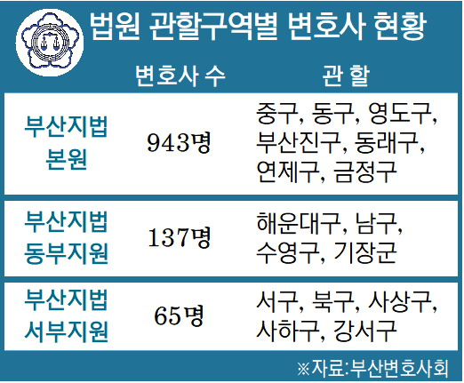 부산에서 개업하는 변호사들이 최근 해운대구나 부산진구 등 도심을 거점으로 삼는 추세를 띤다. 그동안 사법기관이 몰린 연제구 법조타운에 안착하던 모습과 달라졌다. 변호사 수가 급증하면서 경쟁이 치열해졌고 온라인 상담 등 송무 형태가 변하면서 굳이 법원 앞을 고집하지 않는 것으로 보인다.