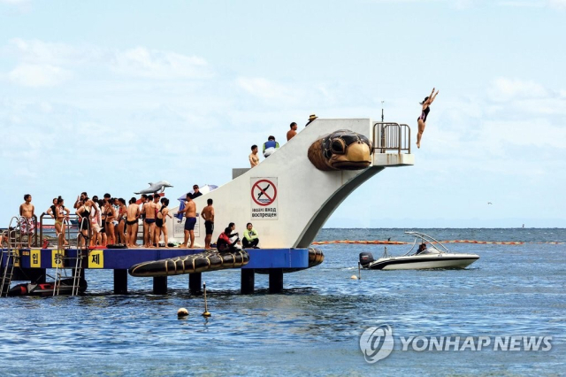 부산 송도해수욕장에 설치된 해상 다이빙대. 연합뉴스