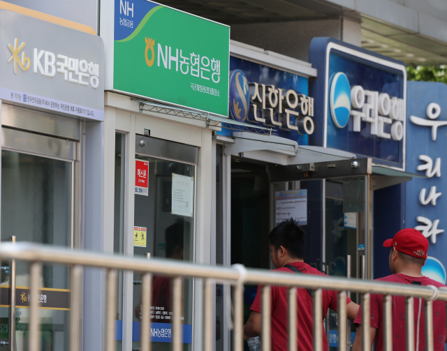 올해 하반기 들어 대출 문턱을 높여온 은행권이 이제는 앞다퉈 실수요자에 대한 예외 규정을 마련하기 시작했다. 시내에 설치된 주요 은행들의 현금인출기 부스. 연합뉴스