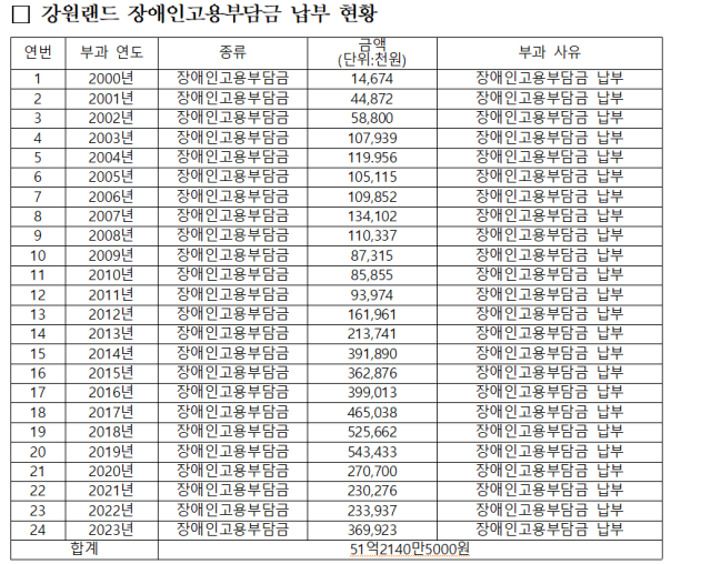 24년간 장애인 고용 외면한 강원랜드…‘장애인고용부담금만’ 51억 납부