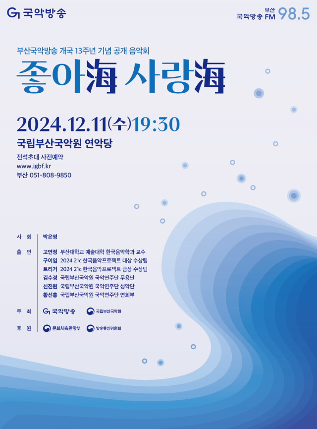 부산국악방송 개국 13주년 기념 공개 음악회 ‘좋아海 사랑海’ 포스터.