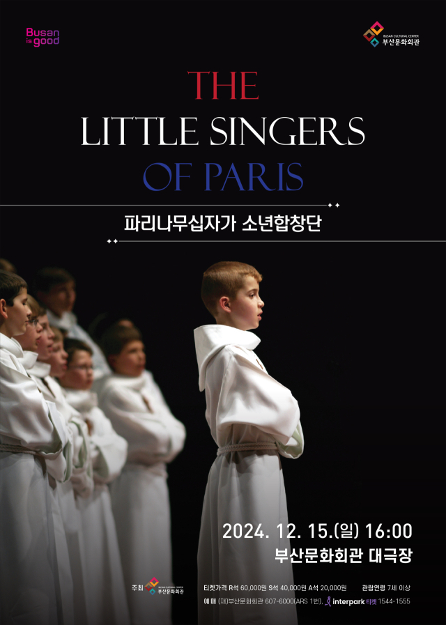 창단 117주년 역사를 자랑하는 ‘2024 파리나무십자가 소년합창단’의 부산 공연. 파리나무십자가 소년합창단은 1907년 창단한 프랑스 아카펠라 소년합창단으로 오스트리아 빈 소년합창단, 독일 퇼처 소년합창단과 더불어 세계 3대 소년합창단 중 하나로 꼽는다. 특히 파리나무십자가 소년합창단은 무반주의 보이 소프라노 합창이 주는 신성함과 경건함으로 그레고리안 성가부터 민요, 현대음악까지 다양한 장르를 넘나드는 폭넓은 레퍼토리를 보여준다. 80명의 단원 중 엄격한 오디션을 통해 오직 24명의 투어 멤버를 선발하며 선발된 1개의 팀만으로 최고의 공연을 선사하는 것으로 정평이 나 있다. 이번 공연에선 성가와 전통음악, 클래식과 팝송 등을 다양하게 들려준다. ▶12월 15일(일) 오후 4시 부산문화회관 대극장. 입장권 R석 6만 원, S석 4만 원, A석 2만 원.