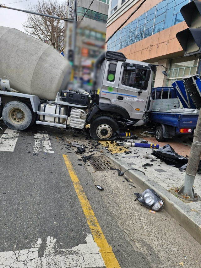 경찰과 소방 당국에 따르면 이날 60대 A 씨가 몰던 레미콘 차량이 동래한서요양병원 앞에서 승합차를 치고 내리막 도로로 질주했다. 이후 레미콘 차량은 중앙대로를 주행중이던 SUV 차량을 충격하고, 중앙선을 넘어 또다른 SUV와 화물차 등 총 3개 차량을 들이받았다. 이 과정에서 사고 현장 주변을 운행하던 승용차가 대열에 끼이며 총 7중 추돌 사고가 발생했다.