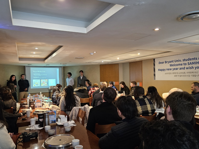 지난 10일 오후 1시께 미국 브라이언트 대학교 MBA 과정 학생·교수 등 50여 명이 부산의 유명 한식당인 사미헌을 찾았다. 이번 방문은 해외를 방문해 해당 지역의 비즈니스 사업에 대해 연구하는 정규 수업의 일환으로 기획됐다.
