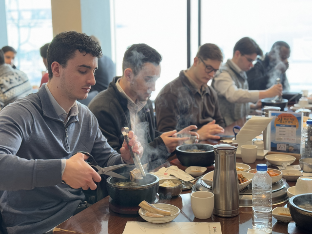 이들은 이날 사미헌에서 갈비탕과 냉면 등을 시식한 뒤, 사미헌의 밀키트(가정간편식) 비즈니스와 로컬 비즈니스가 국내 시장에서 성장하게 된 과정과 원동력 등에 대해 사례 연구를 실시했다. 이어 현지 학생 두 그룹이 분석한 미국 시장 진입 전략 등에 대한 PT 발표 등도 진행됐다.