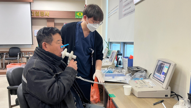 이샘병원 의료진들이 기업체를 방문해 폐기능 검사(위)와 청력검사 등 특수 건강검진을 하고 있는 장면. 소음·분진 등 특정 유해 인자에 노출된 근로자를 대상으로 직업병 예방 차원에서 실시하는 것이 특수 건강검진이다. 이샘병원 제공
