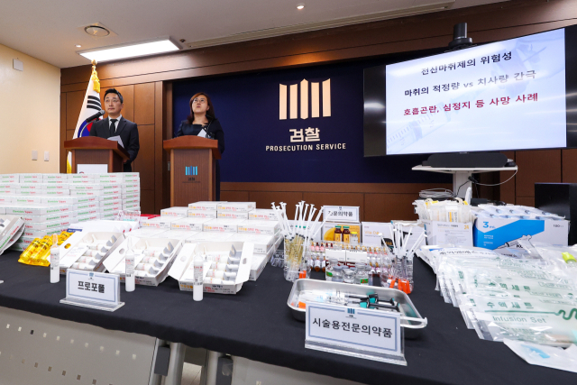 검찰에 압수된 프로포폴, 에토미데이트 등 의료용 마약. 연합뉴스
