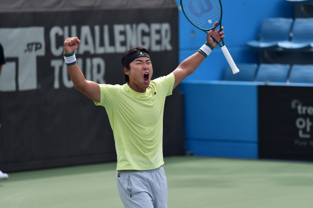 부산오픈 챌린저대회 남자 단식에서 16강에 진출한 신산희. 연합뉴스