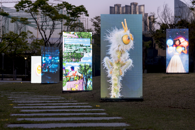 부산시립미술관 야외 조각공원에서 전시 중인 '디지털 서브컬처' 전경 사진. 부산시립미술관 제공
