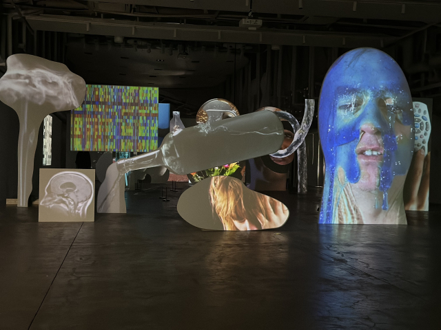 김봉관 작가의 혼합 현실(MR, Mixed Reality) 기술을 활용한 몰입형 추상 미디어 아트 재연 모습. 리빈갤러리 제공