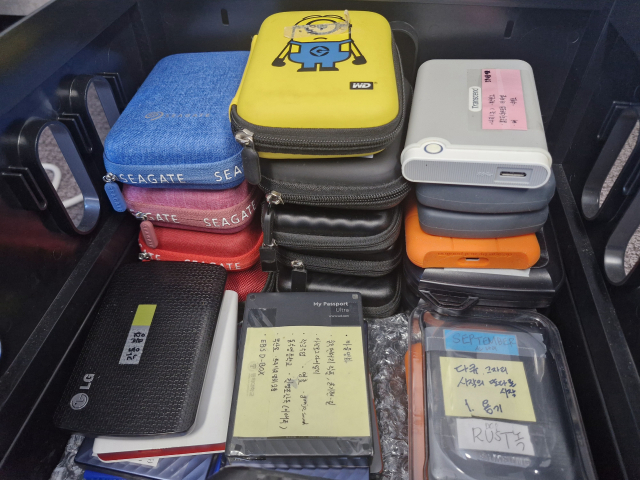 신나리 감독이 촬영한 영상물이 담긴 하드 디스크. 김영조 감독은 이 영상물과 일기 모음집을 바탕으로 신 감독 추모 다큐를 구상하고 있다. 김희돈 기자