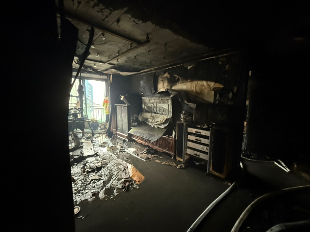 24일 부산소방재난본부에 따르면 이날 오전 7시 15분께 해운대구 반여동 25층 높이 아파트에서 불이 났다. 화재로 집 내부 천장과 가구 등이 불에 탔다.