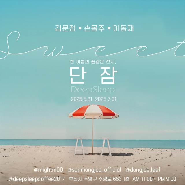 현실과 가상공간을 잇는 미디어와 설치 전시, 참여 작가는 손몽주, 김문정, 이동재 등 3인이다. ▶5월 31일(토)~7월 31일(목) 부산 수영구 딥슬립커피(수영로 663, 1층).