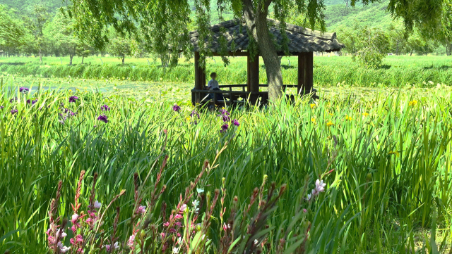 수련원, 연꽃원은 꽃이 아니더라도 천천히 산책하기에 최고의 공간이다. 두 연못 사이로 버드나무 길이 조성돼 있는데 시원한 바람과 함께 걸으면 이보다 좋을 게 없다. 꿈길을 걷는 것 같은 환상적인 분위기의 돌길이 이어져 있다. 초여름 바람에 낭창거리는 버드나무 가지는 땅에 닿을 듯 축 늘어졌다.