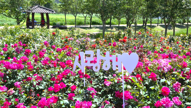장미꽃 앞에 흥미로운 글자가 서 있다. ‘꽃길만 걷자.’ 사랑하는 두 연인이 이곳을 찾았을 때 이 글자 앞에서 사진을 찍는 것만큼 기분 좋은 일은 없을 것이다. 인근에는 ‘꽃길만 걷게 해줄게’라는 글자가 있다. 청혼할 때 여기서 하면 최고이지 않을까.