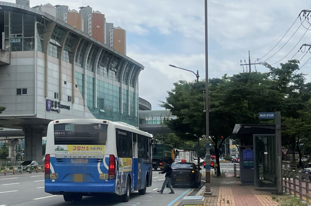 경남 김해지역 시내버스가 외동의 한 버스정류장에 정차해 있다. 이경민 기자
