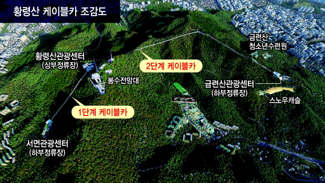 케이블카는 1단계와 2단계로 나눠 추진된다. 케이블카 1단계 구간(539m)은 전포동 황령산레포츠공원과 봉수전망대를 연결하는 것으로 관련 인허가 절차를 대부분 마치고 착공을 남겨두고 있다. 지난달 조건부 의결로 통과한 2단계 케이블카의 경우 교통 등 일부 심의가 남아 있다.