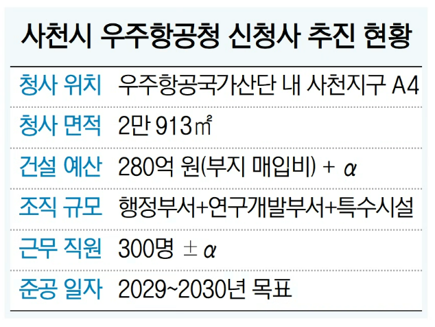 사천시 한 지역단체 관계자는 “정권이 바뀐 뒤로 우주항공청이 분리된다는 등 흉흉한 소문이 많았다”면서 “다행히 지역이 합심해 이를 막아내고 예정에 맞게 신청사가 들어설 수 있게 됐다”라고 말했다.