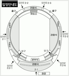 운동장내 입장은 편리한 위치의 입장문을 자유롭게 이용할 수 있으며 행사가 끝나면 모든 출입문이 개방되므로 가까운 출입문을 이용해 천천히,안전하게 귀가하도록 한다.입장권은 예매로만 구입할 수 있고 현장에서는 판매하지 않는다.